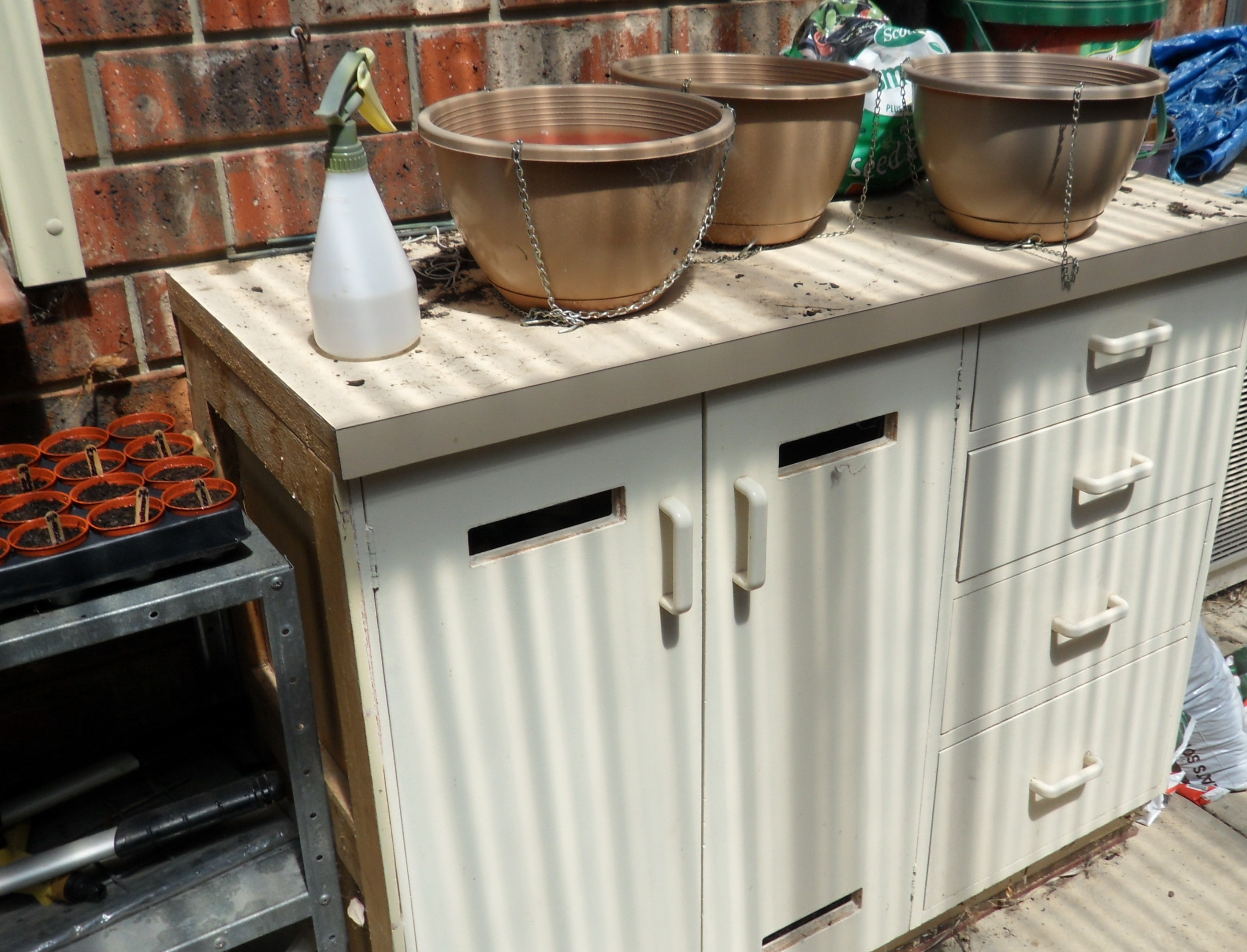 My partner had the idea to bring it outside and I am so glad he did! Not only are the cupboards and drawers so handy, but the height is also perfect. Pus it was free!
