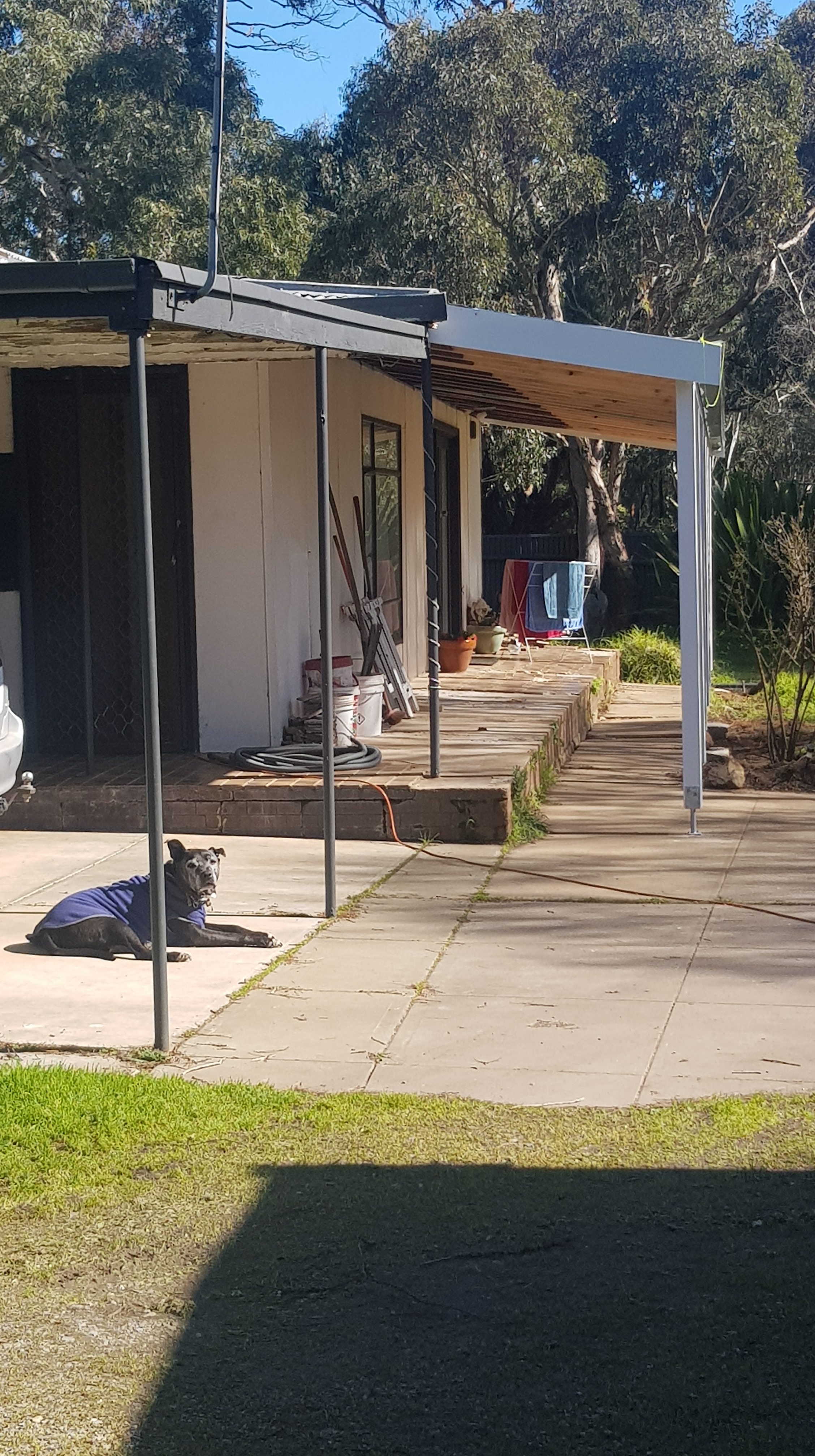 So far, we are beyond happy with the new verandah and roof sheets. I think we made the right choice with colour, wanting reflective qualities to do our best to insulate the inside.
